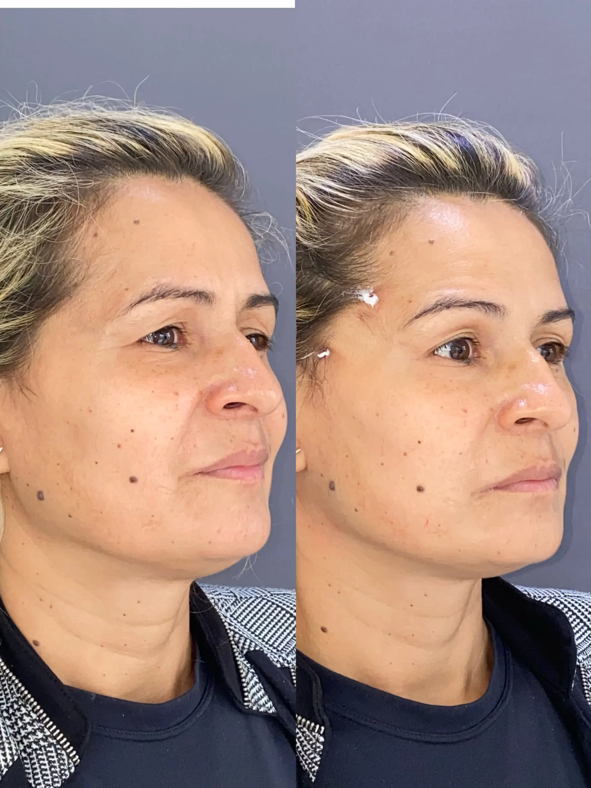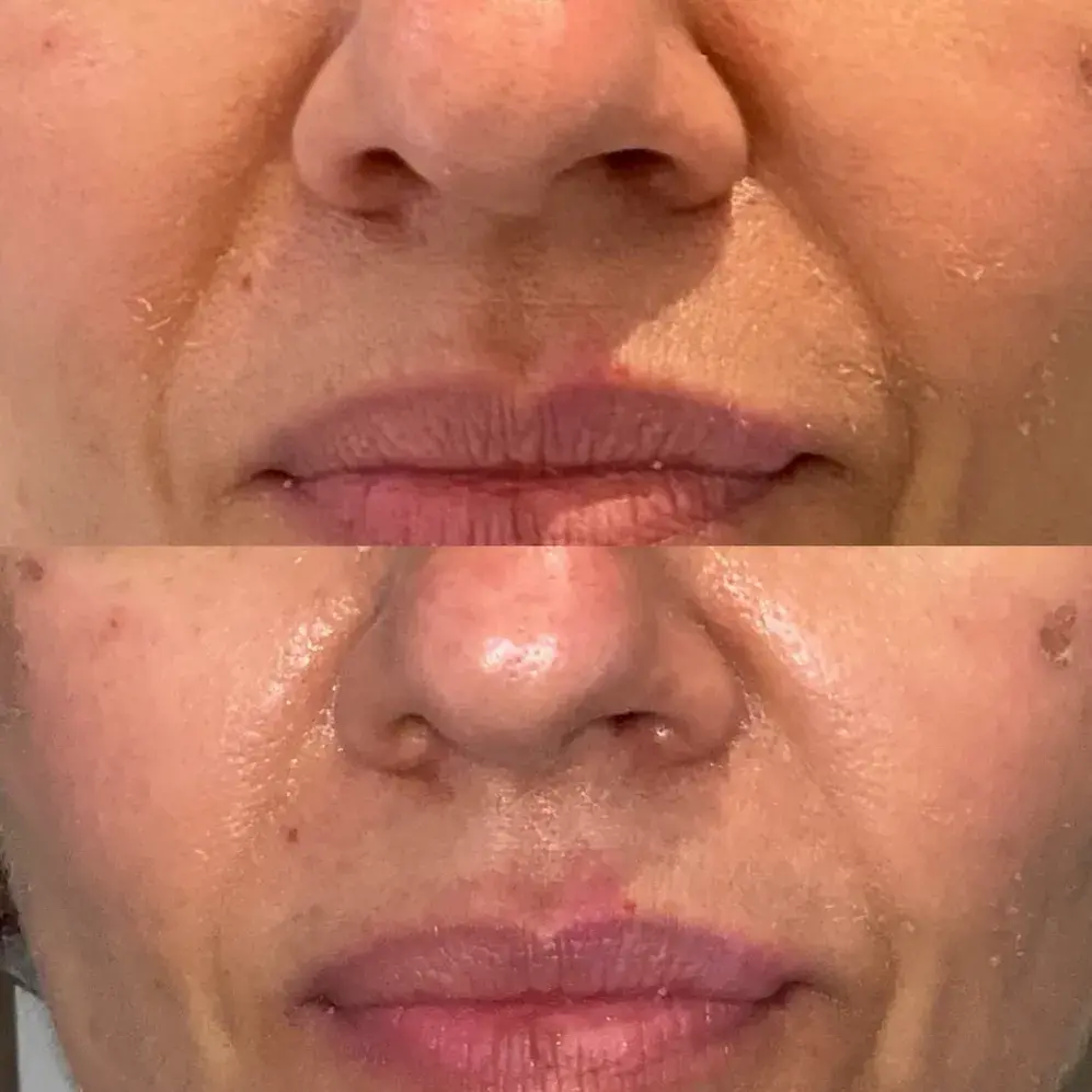 Preenchimento realizado com ácido hialurônico promovendo o rejuvenescimento facial.